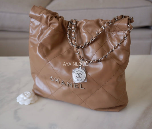 CHANEL 22K Beige Calf Skin Small 22 Bag Matte Silver Hardware