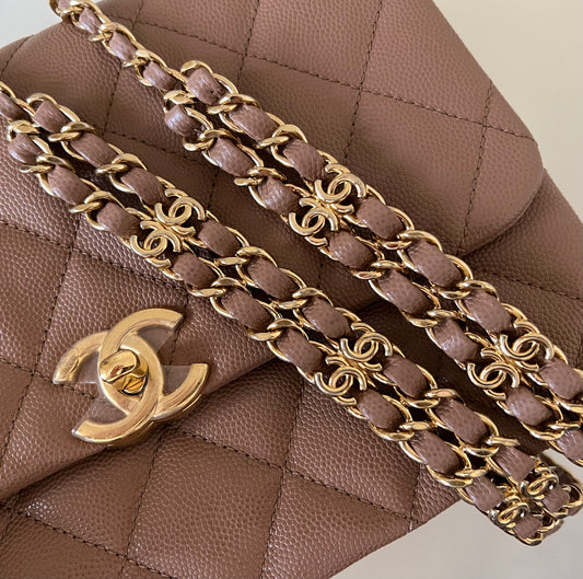 CHANEL 22K Dark Beige Caviar Small Coco First Microchipped Gold Hardware