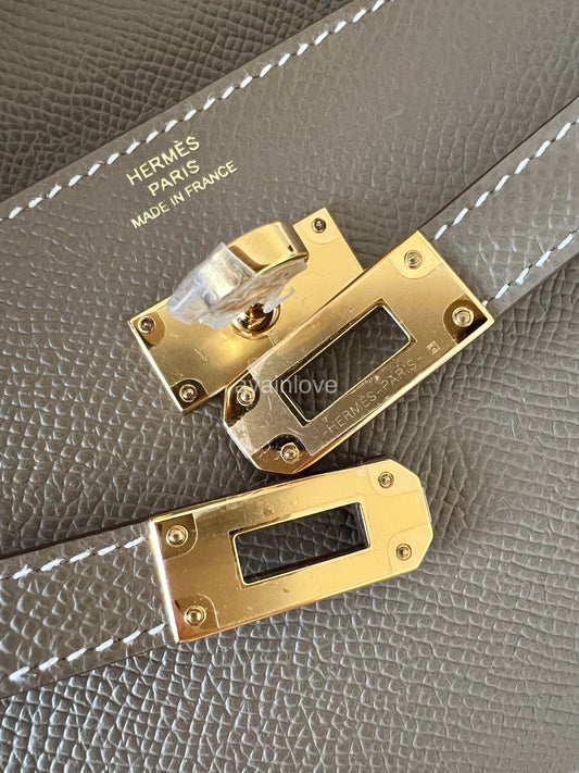 HERMES Kelly To Go 18 KTG Clutch Epsom Etoupe Gold Hardware