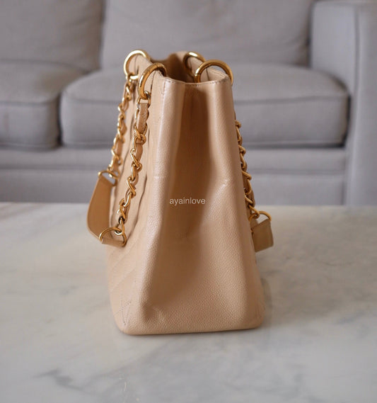 CHANEL Beige Clair Caviar Grand Shopping Tote Gold Hardware 2012