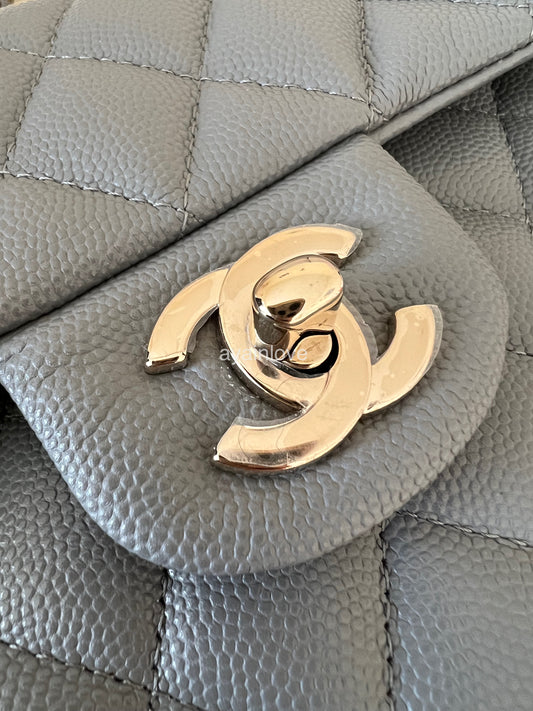 CHANEL 20C Grey Caviar Small Classic Flap Light Gold Hardware