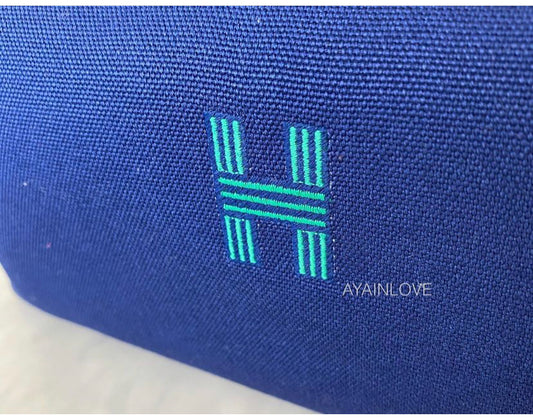 HERMES Bride-A-Brac Blue Canvas Large Case With H Logo And Palladium Hardware