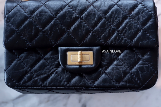 REISSUE 224 RECTANGULAR MINI BLACK AGED CALFSKIN BRUSHED GOLD HARDWARE *NEW*