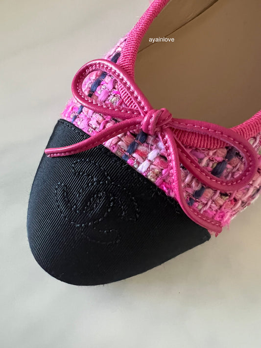 CHANEL CC Pink Multicolour Tweed Ballet Shoes Size 38 EU