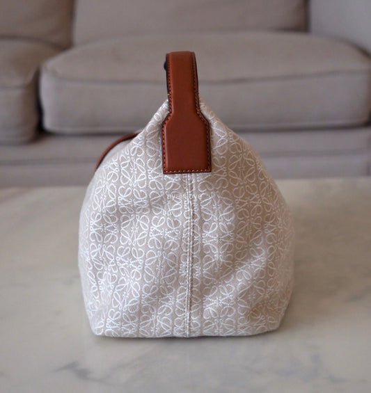 LOEWE Ecru Tan Anagram Canvas Cubi Jacquard and Calfskin Medium Hobo Bag