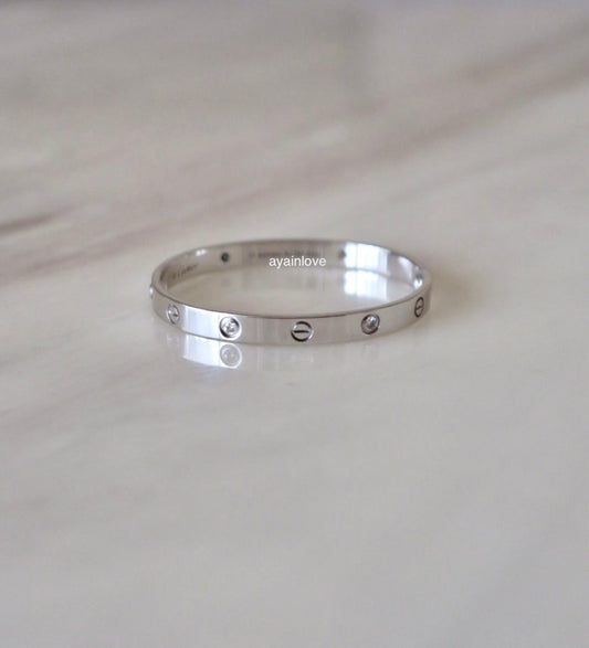 CARTIER 18KT White Gold 4 Diamonds LOVE Full Size Classic Model Bracelet Size 17
