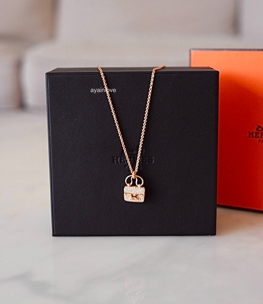 HERMES Amulettes Constance Pendant 18KT Rose Gold and Diamonds Necklace