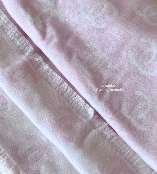 CHANEL CC Logo Wool Cashmere Double Side Light Pink/White Scarf Shawl