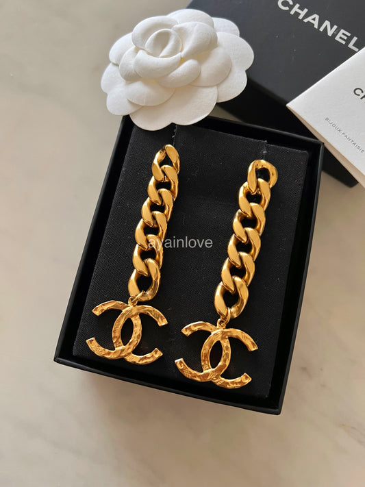 CHANEL 20P Chain Large CC Earrings Gold Hardware