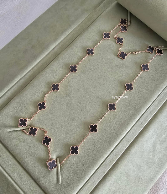 Van Cleef Arpels VCA 20 Motifs Necklace Silver Obsidian 18KT Rose Gold Vintage Alhambra