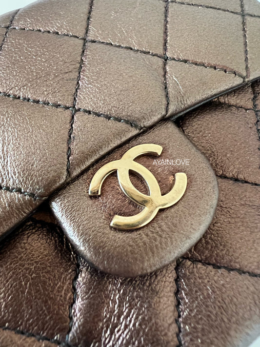 CHANEL Vintage 1997-1999 Mini Bronze Flap Pouch Bag Charm 24K Gold Plated Hardware