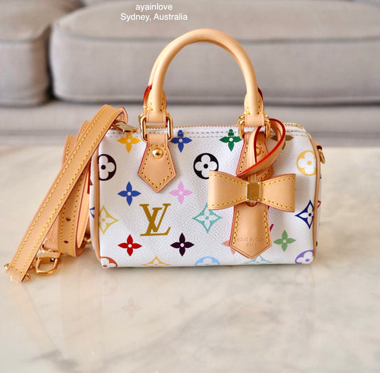 LOUIS VUITTON LV x TM White Multicolour Murakami Nano Speedy Gold Hardware