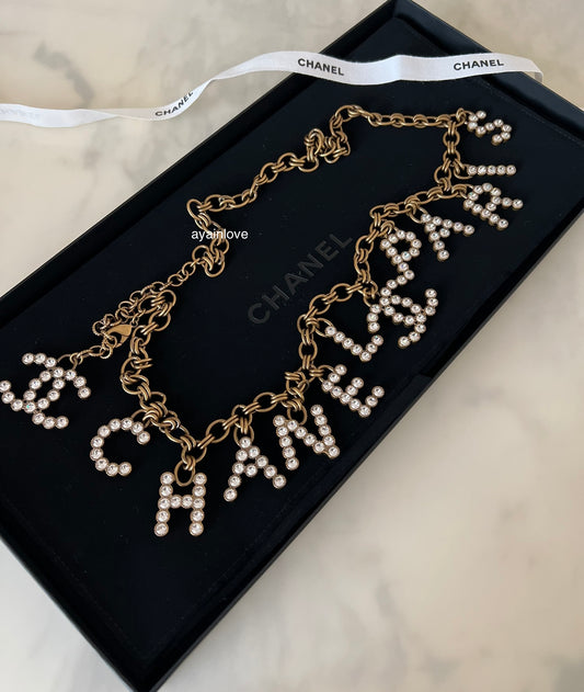 CHANEL CC Crystals City of Lights Adjustable Chain Belt Necklace Gold Hardware