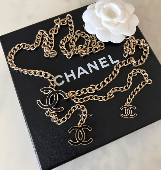 CHANEL 07V Black Enamel CC Adjustable Chain Belt Necklace Light Gold Hardware