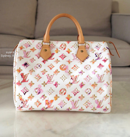 LOUIS VUITTON LV Watercolour Aquarelle White Monogram Canvas Classic Speedy 30 Bag