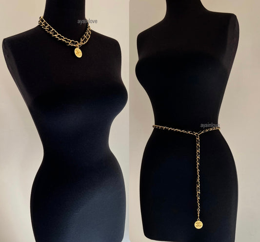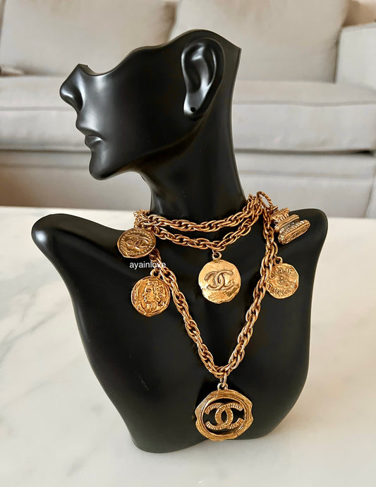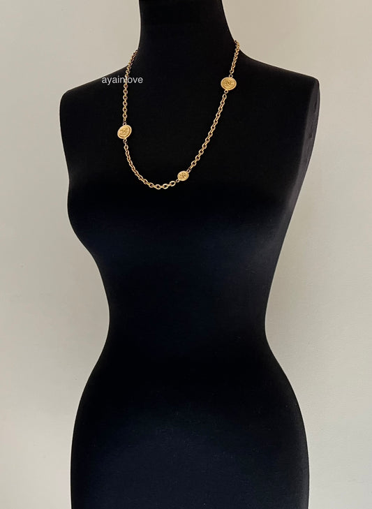 CHANEL 1980s Vintage Charms Medallion Chain Belt Necklace 24K Gold Plated Hardware