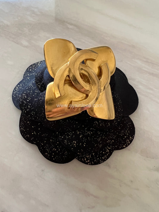 CHANEL 1996 Vintage CC Large Brooch Clover 24K Gold Plated Hardware