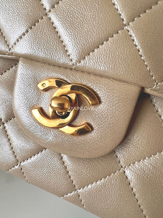 CHANEL Vintage Beige Lamb Skin Medium Classic Flap 24K Gold Plated Hardware Series 1