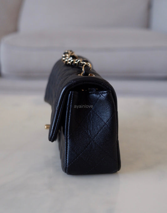 CHANEL 18B Black Caviar Quilted Rectangular Mini Flap Bag Light Gold Hardware