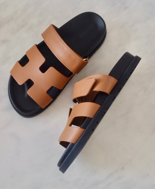 HERMES Tan Chypre Calfskin Sandals Size 36.5 EU