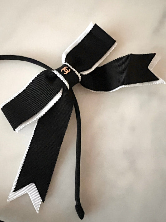 CHANEL 22K Black White Grosgrain Ribbon CC Headband Bandeau