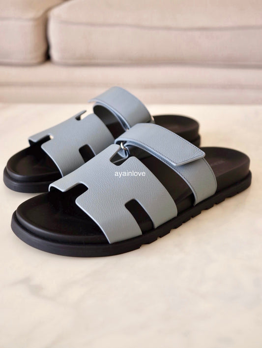 HERMES Grey Chypre Epsom Calfskin Men Sandals Size 44 EU