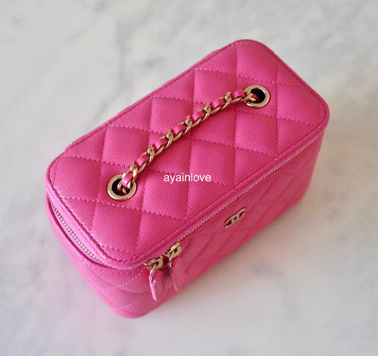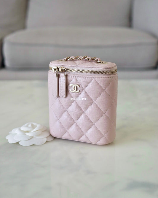 CHANEL 20C Pink Caviar Vertical Vanity on Chain Light Gold Hardware
