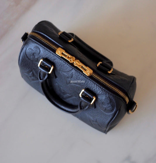LOUIS VUITTON LV Black Monogram Empreinte Speedy Bandoulière 20 Gold Hardware
