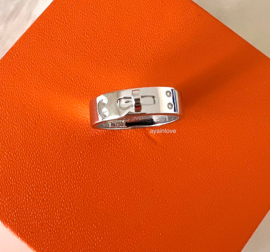 HERMES Kelly 18KT White Gold 4 Diamonds Small Model PM Ring Size 50