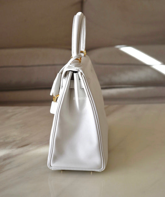 HERMES Kelly 25 New White Swift Retourne Gold Hardware W Stamp