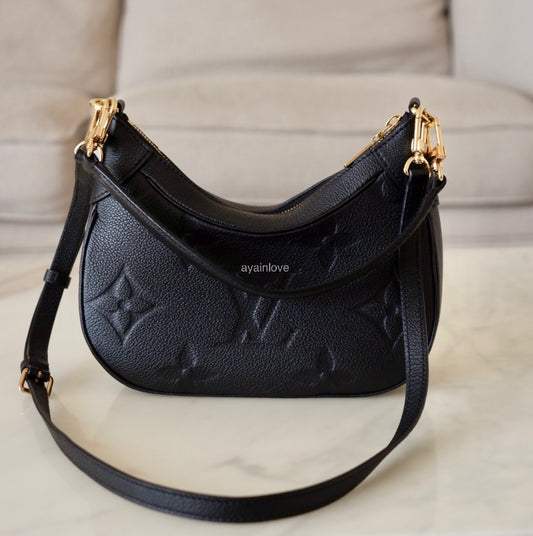 LOUIS VUITTON LV Black Monogram Empreinte Bagatelle Gold Hardware