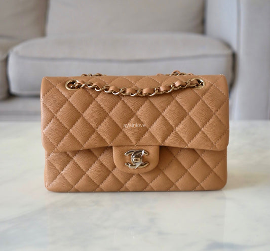 CHANEL 23P Dark Beige Caviar Small Classic Flap Light Gold Hardware