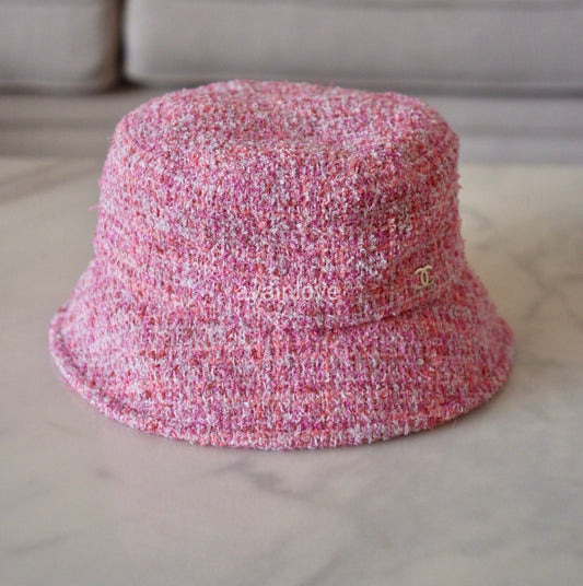 CHANEL 24P Pink Ecru Tweed Bucket Hat Cap M Size