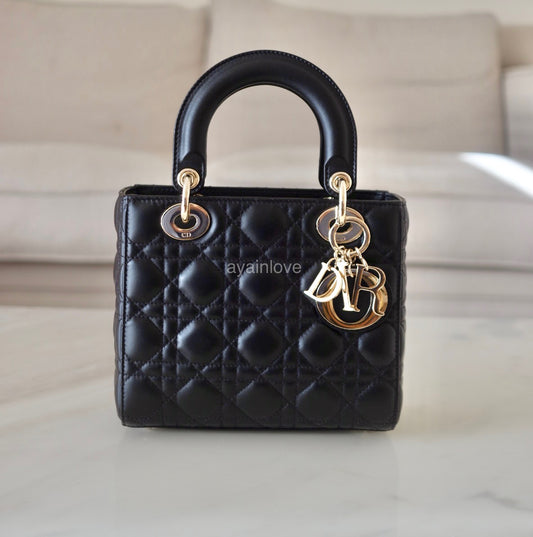 DIOR Small Lady Dior Black Cannage My ABCDior Lucky Badges Bag Light Gold Hardware