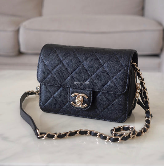 CHANEL 22C Black Caviar Like a Wallet Mini Flap Bag Gold Hardware
