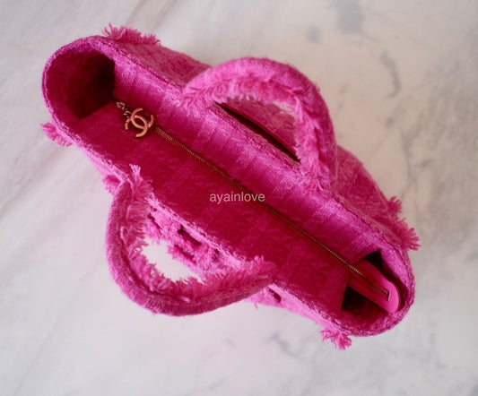 CHANEL 19K Pink Fuchsia Quilted Tweed Zipped Tote Bag Brushed Gold Hardware