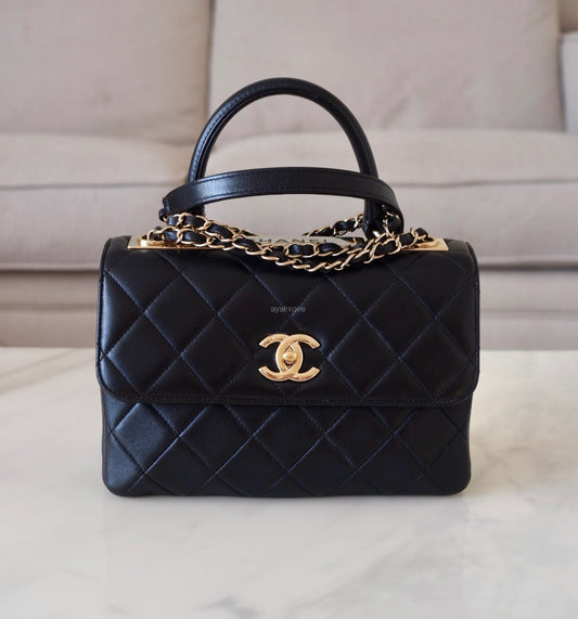 CHANEL Black Small Trendy Flap Bag Light Gold Hardware