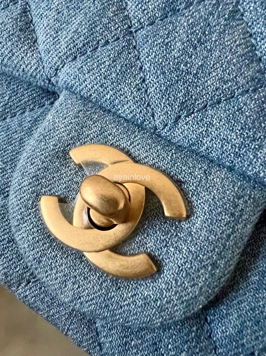 CHANEL 22C Blue Denim Pearl Crush Square Mini Flap Bag Gold Hardware