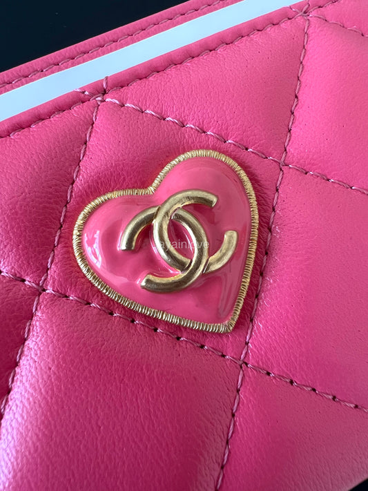 CHANEL 23S Pink Heart Lamb Skin Flat Card Holder Gold Hardware
