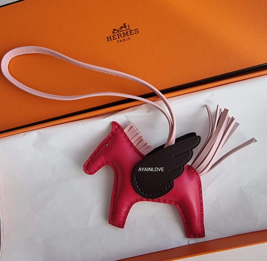 Hermes Rodeo Pegase Horse Bag Charm Framboise/Rouge Sellier/Rose Sakura Stamp U
