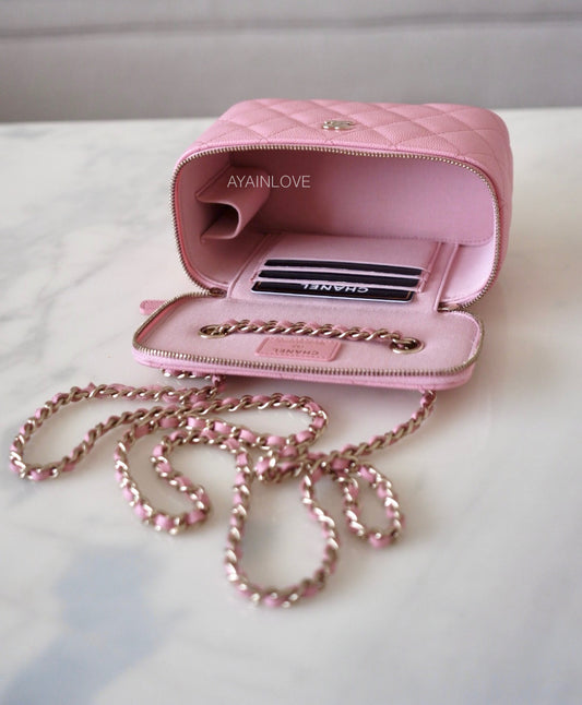 CHANEL 22C Pink Caviar Rectangular Vanity On Chain Gold Hardware