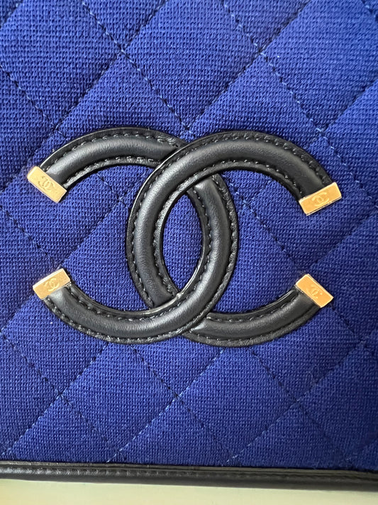 CHANEL Filigree Multicolour Blue Turquoise Cotton Calfskin Leather Medium Vanity Case Gold Hardware