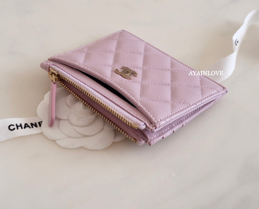 21S LILAC ROSE CLAIR CAVIAR ZIP-TOP FLAT CARD HOLDER LIGHT GOLD HARDWARE
