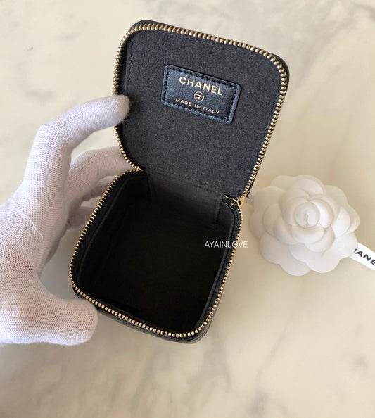 CLASSIC BLACK LAMB SKIN SQUARE ZIP AROUND JEWELLERY BOX GOLD HARDWARE *NEW*