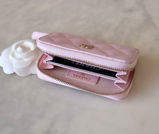 22P LIGHT PINK CAVIAR ZIPPY CARD HOLDER LIGHT GOLD HARDWARE *NEW*