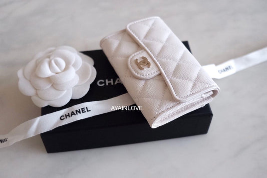 21S WHITE CAVIAR SMALL SNAP CARD HOLDER LIGHT GOLD HARDWARE