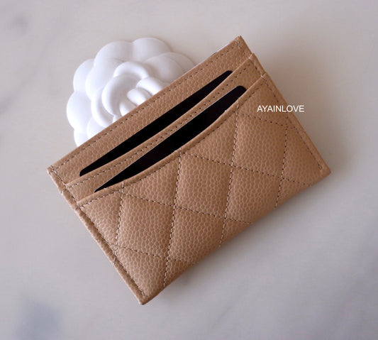 CLASSIC BEIGE CLAIR CAVIAR FLAT CARD HOLDER HOLD HARDWARE *NEW*