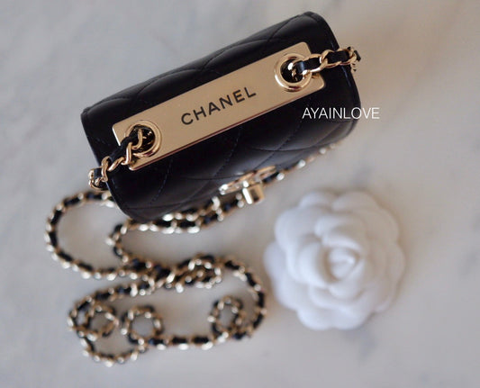 BLACK SMALL TRENDY CC CLUTCH ON CHAIN IN LAMB SKIN AND LIGHT GOLD HARDWARE
