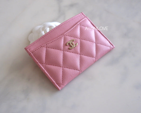 22C PINK CAVIAR FLAT CARD HOLDER LIGHT GOLD HARDWARE *NEW*