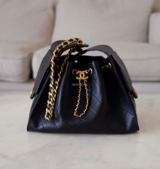CHANEL 24C Black Caviar Mini Backpack Cross-Body Bag Light Gold Hardware